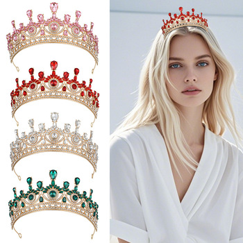 Tocado DE CORONA DE NOVIA de cristal Barroco Europeo Americano, accesorios de noche para vestido de novia, diamantes de imitación de aleación, venta directa de fábrica