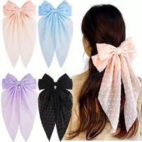 กิ๊บติดผมผ้าชีฟองติดโบว์ขนาดใหญ่ติดโบว์กิ๊บหนีบผมโบว์สีทึบอุปกรณ์เสริมผมสำหรับผู้หญิง